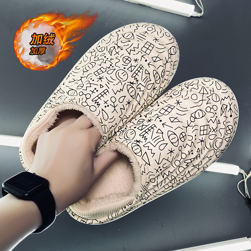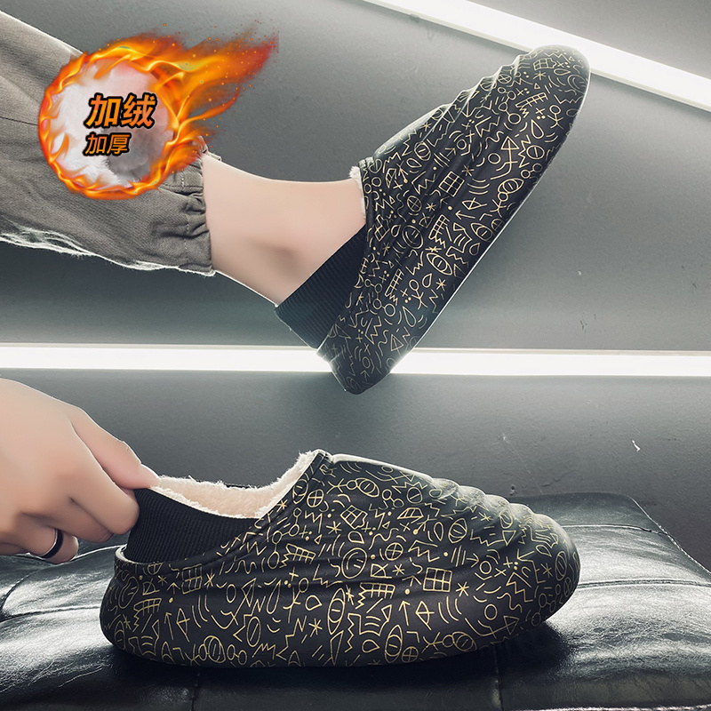 居家防滑加绒保暖包跟毛拖踩屎感厚底情侣东北棉鞋 冬季 男款 棉拖鞋