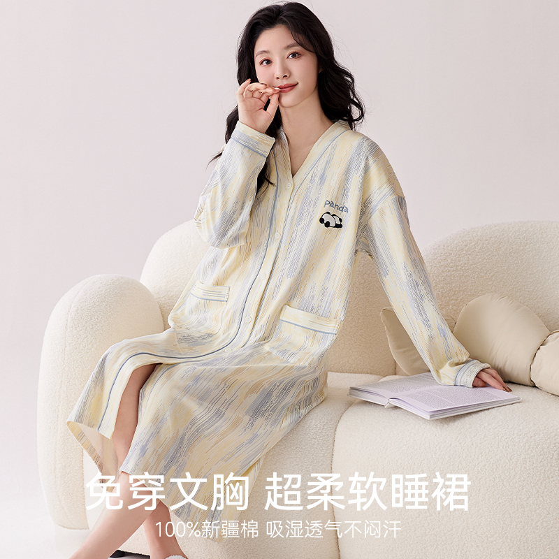 家居服 学生高级感中长款 猫人纯棉睡裙女带胸垫睡衣春秋季 2025新款