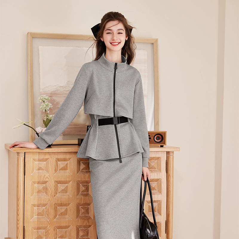 设计感太空棉拉链外套女 新款 白鹿语气质立领修身 收腰外套2025春季