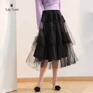 小个子春秋蕾丝蓬蓬蛋糕裙 a字中长款 白色半身裙女夏季 2025年新款