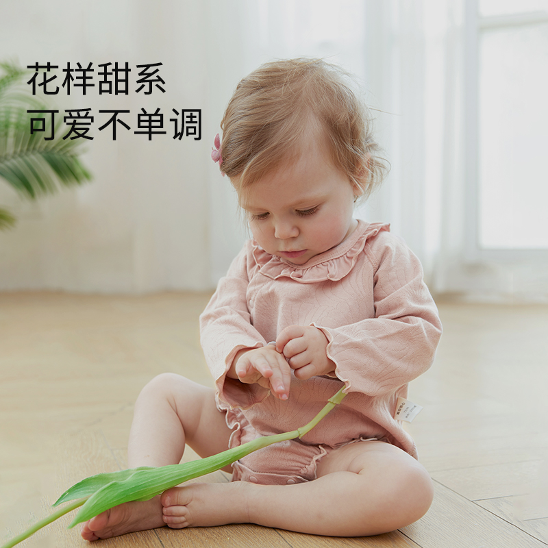 公主三角哈 新生儿衣服纯棉长袖 婴儿包屁衣女宝宝连体衣春秋款 秋装
