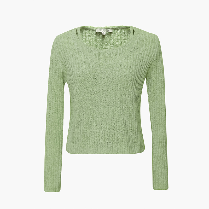 气质百搭绿色小衫 法式 上衣 新款 HeyDress假两件吊带针织T恤女秋季