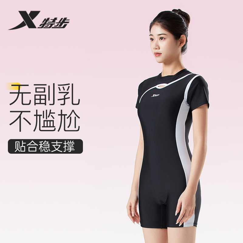 鸿星尔克泳衣女新款 连体保守平角遮肚显瘦初中生专业运动游泳馆装