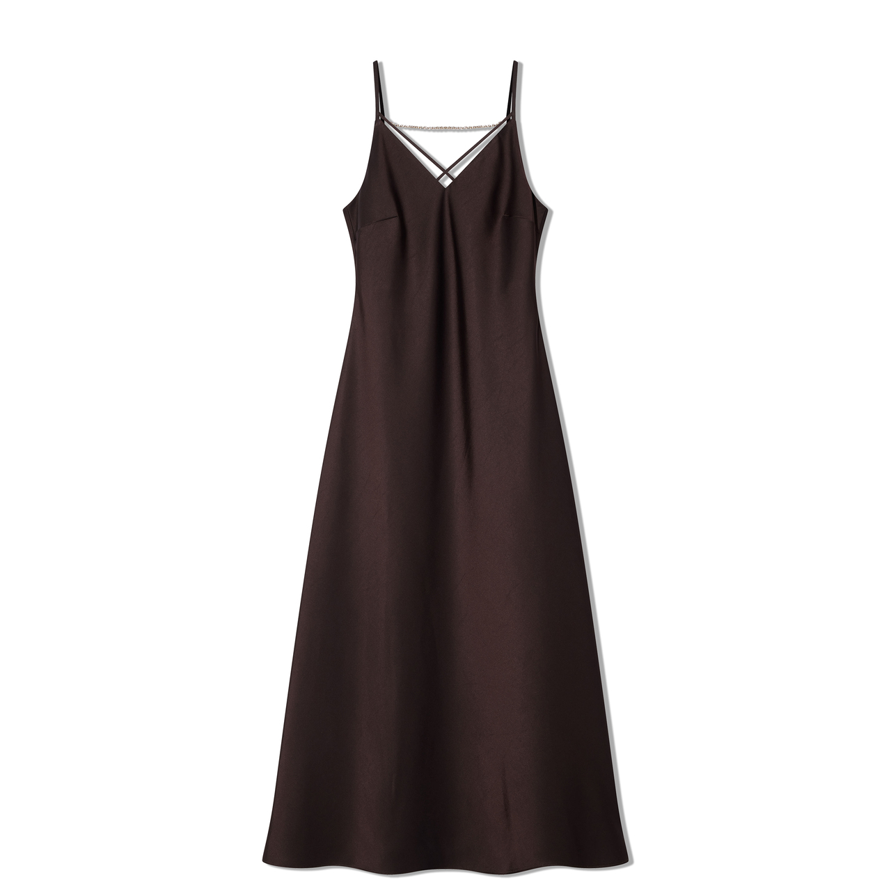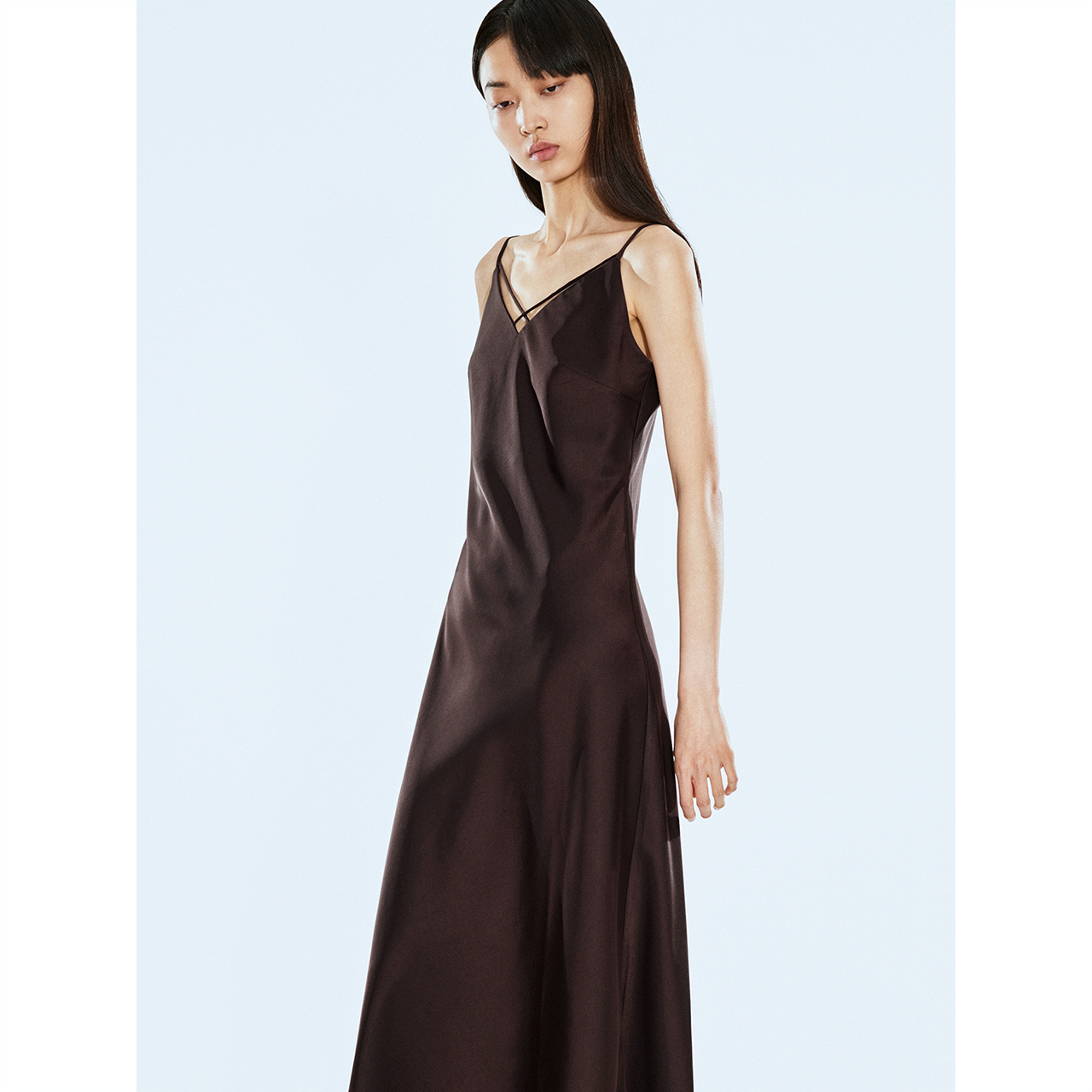 COVERINS夏季 CC34105070 高级缎面感醋酸v领吊带连衣裙长款
