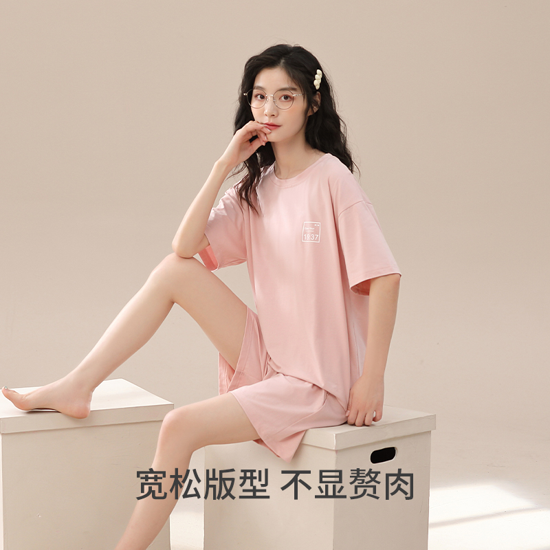 短裤 棉睡衣女短袖 圆领舒适简约宽松女家居服 新品 三枪2025夏季