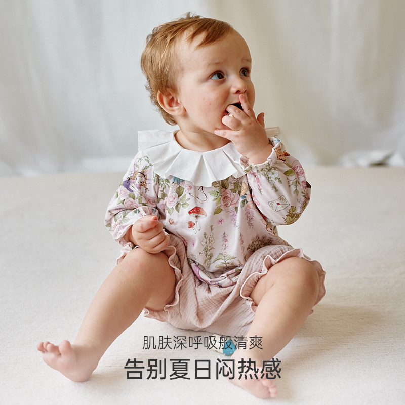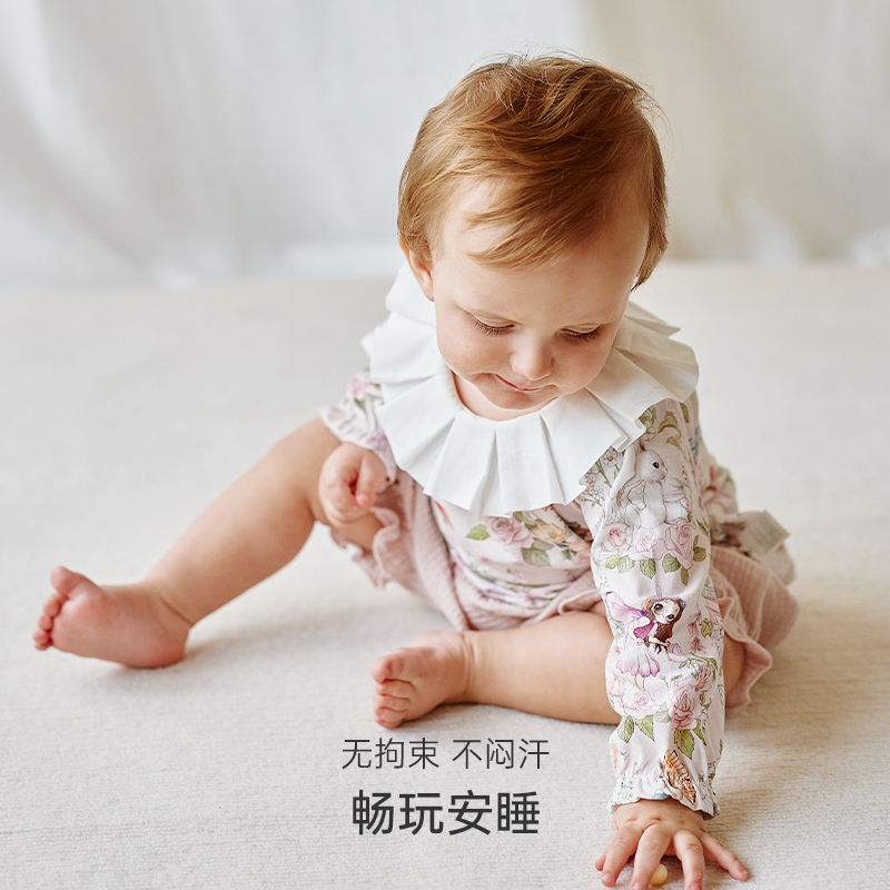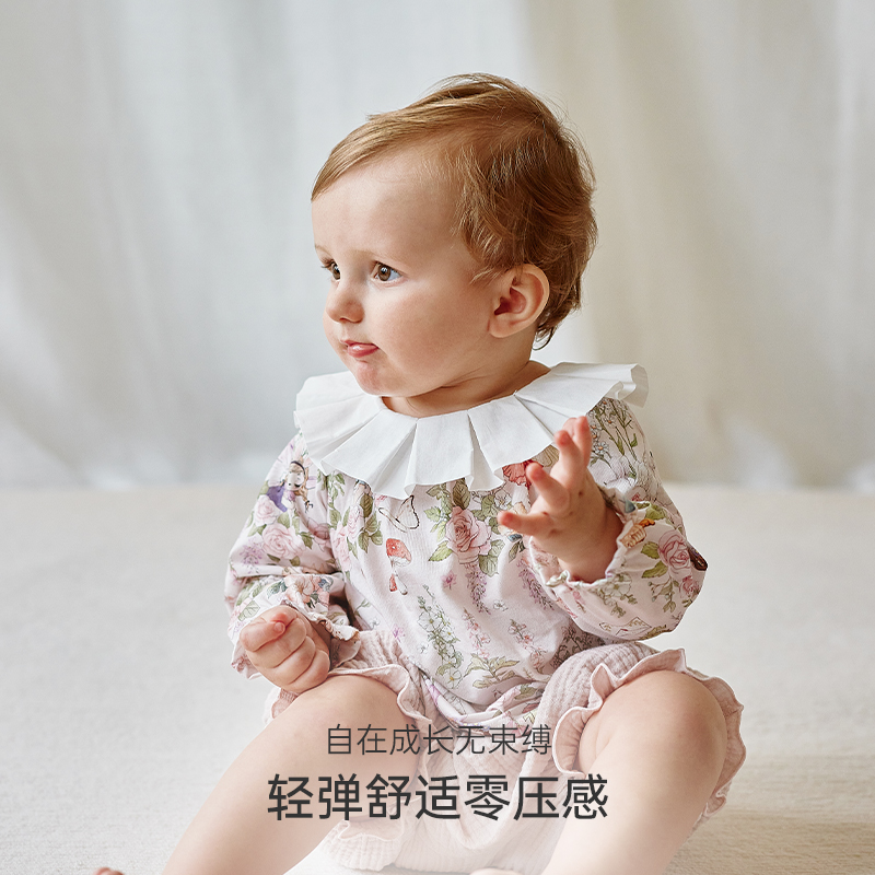 T恤印花荷叶领上衣衬衣女宝宝娃娃衫 Oak Family春秋儿童纯棉长袖