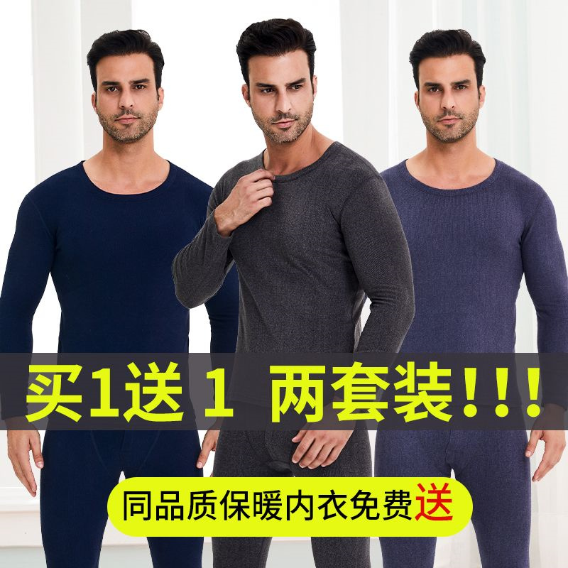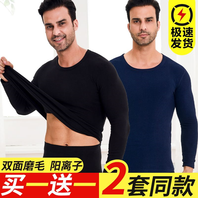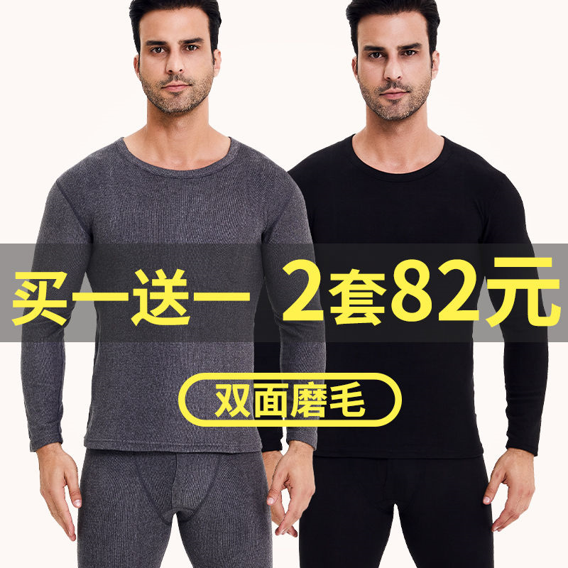 大码 秋冬加厚圆领秋衣秋裤 打底 保暖内衣套装 德绒男士