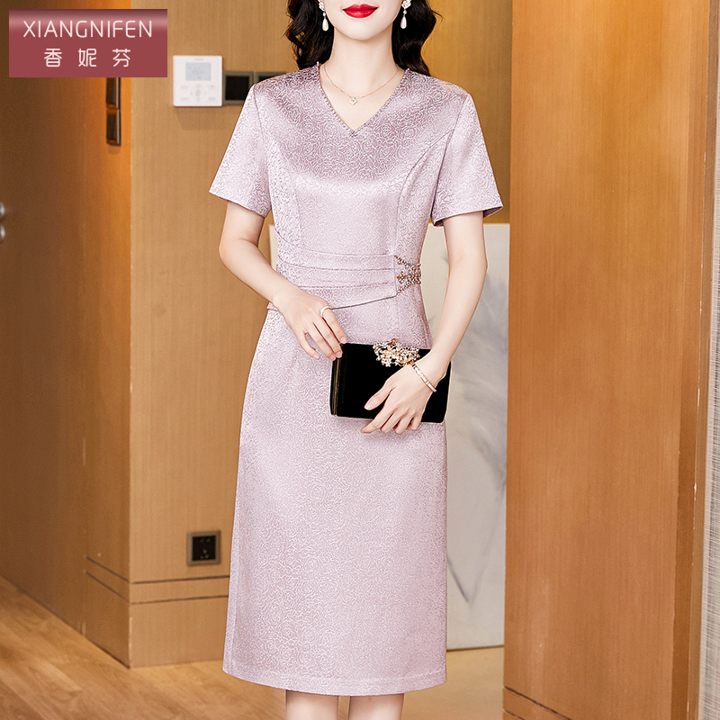 菲梦伊钉珠提花红色连衣裙女秋装 高端优雅气质收腰宴会敬酒服 新款