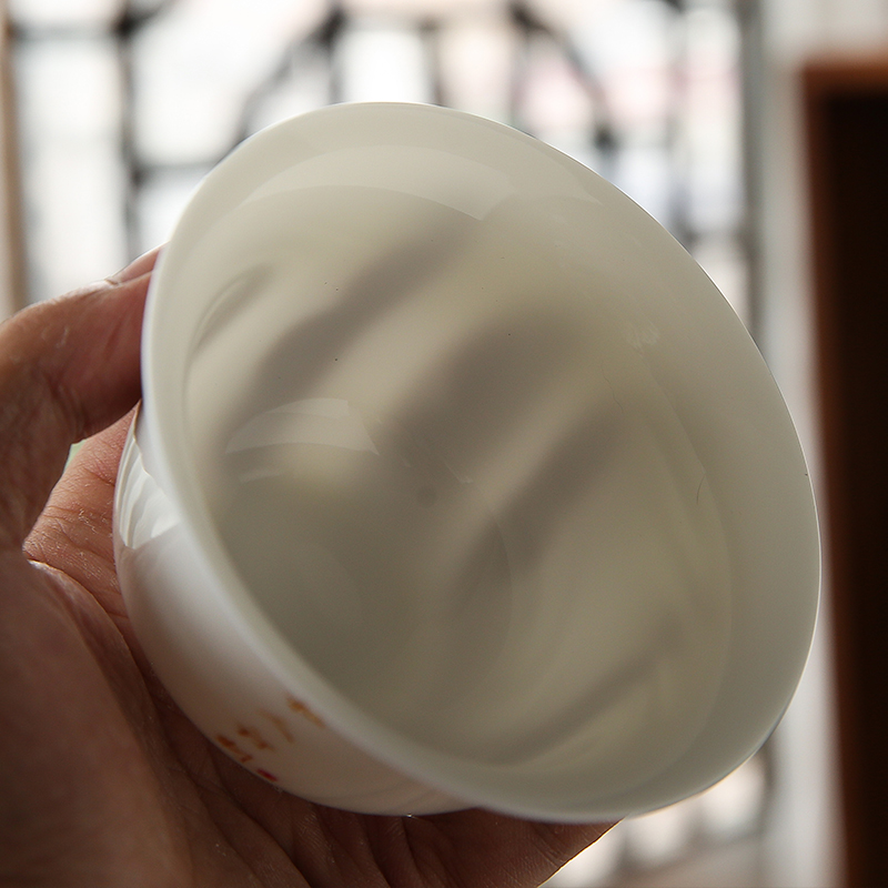 羊脂玉白瓷三才盖碗陶瓷功夫茶具单个泡茶杯写字刻字雕刻logo定制