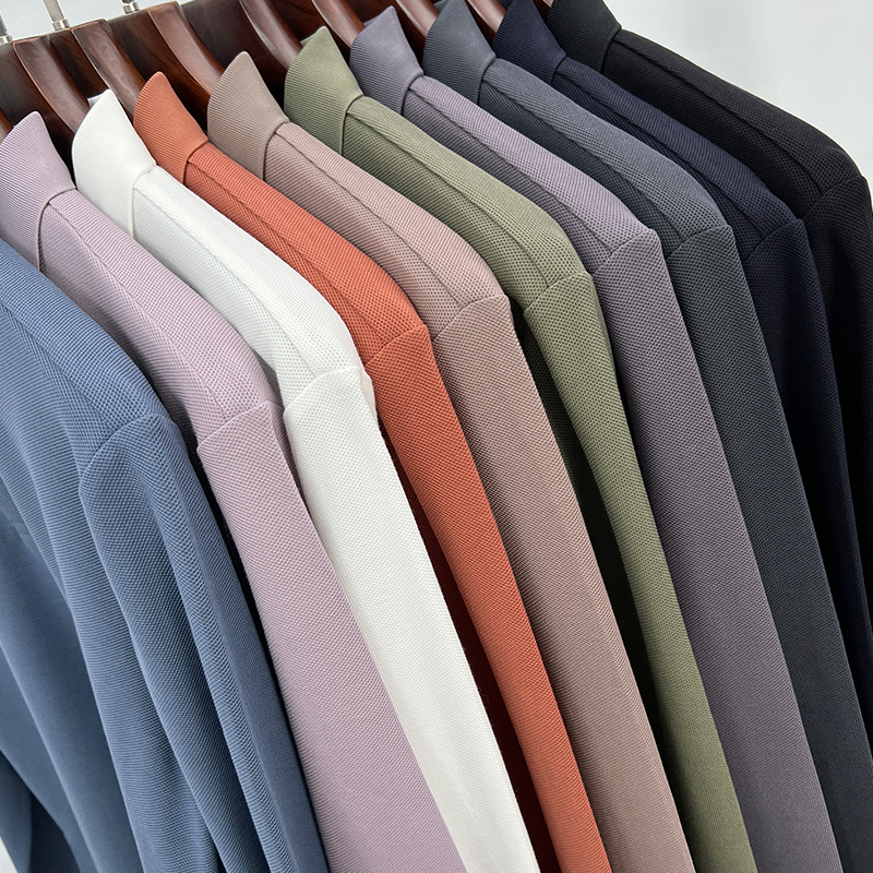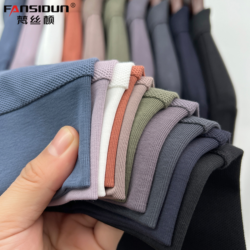 无LOGO标POLO衫 T恤带领春秋上衣服纯色净版 珠地纯棉体恤 长袖 男士
