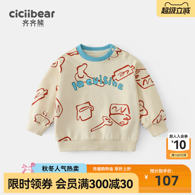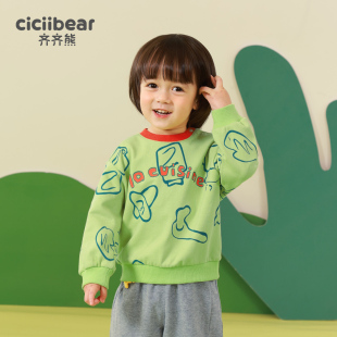 宝宝休闲上衣春装 婴儿春季 儿童套头衫 齐齐熊宝宝毛圈卫衣春秋新款