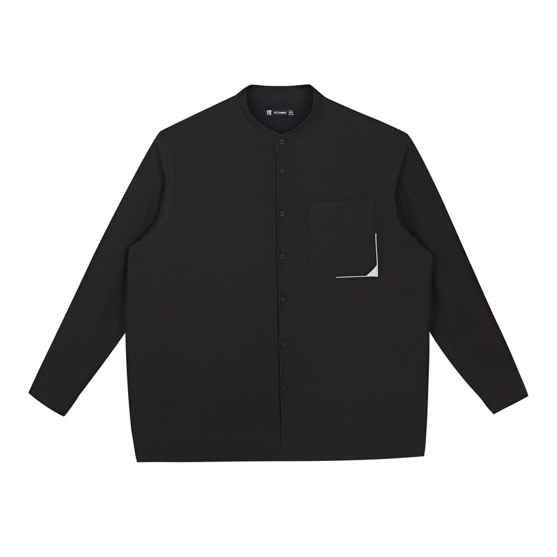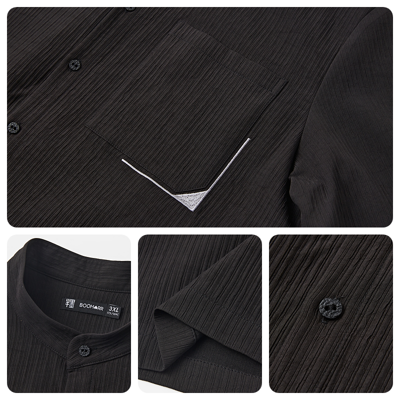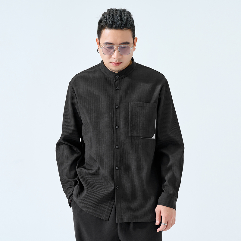 衬衫 长袖 男士 2025秋季 条纹立领衬衣男宽松胖子 半墨大码 新中式 男装