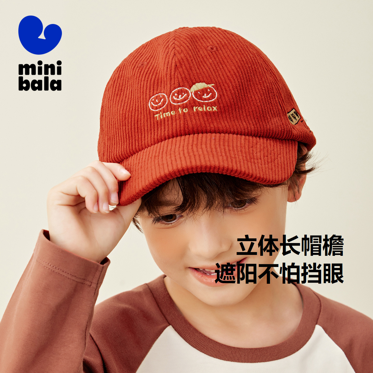 迷你巴拉巴拉男童女童灯芯绒刺绣棒球帽宝宝秋季 透气遮阳帽子