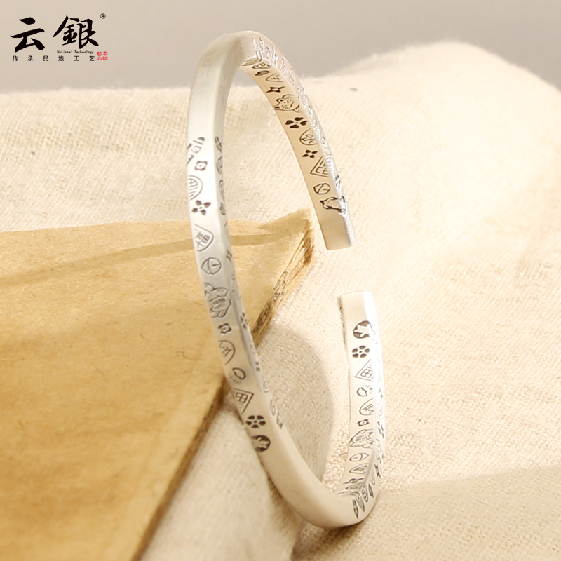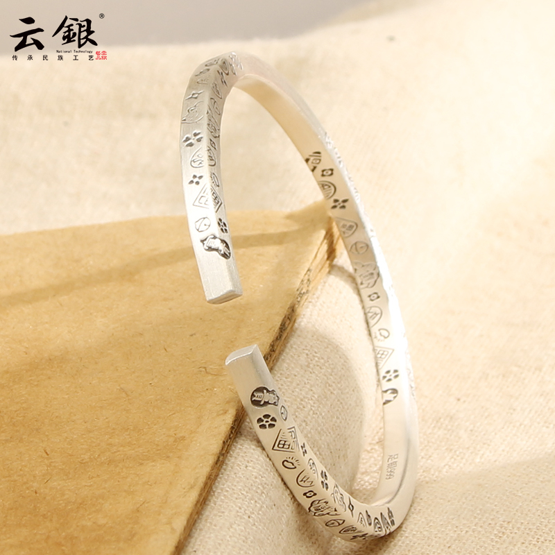 碎冰冰999足银手镯女款 碎银镯子生日礼物送女友 纯银实心2025新款