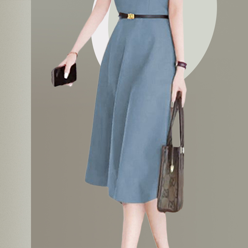老钱风含棉收腰撞色七分袖 新款 牛仔裙 Moda连衣裙女2025秋季 Vero