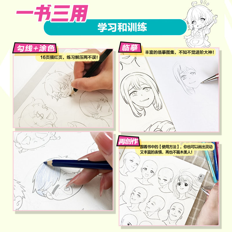 动漫人物表情神态2000例 游戏动漫绘画教程书人体结构原理和绘画教学漫画教程漫画人物绘画手绘基础动态临摹速写图集