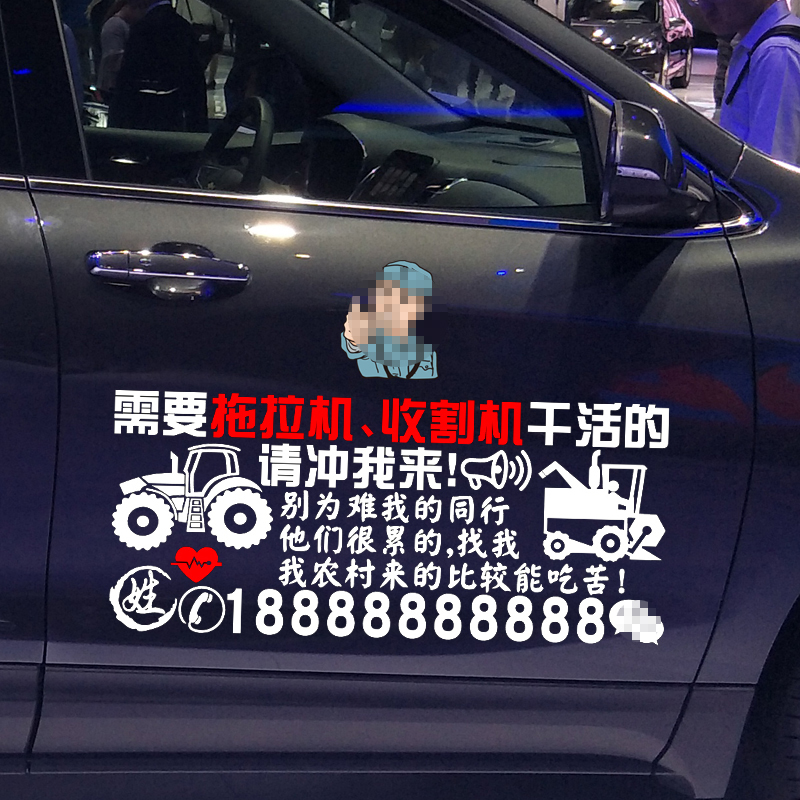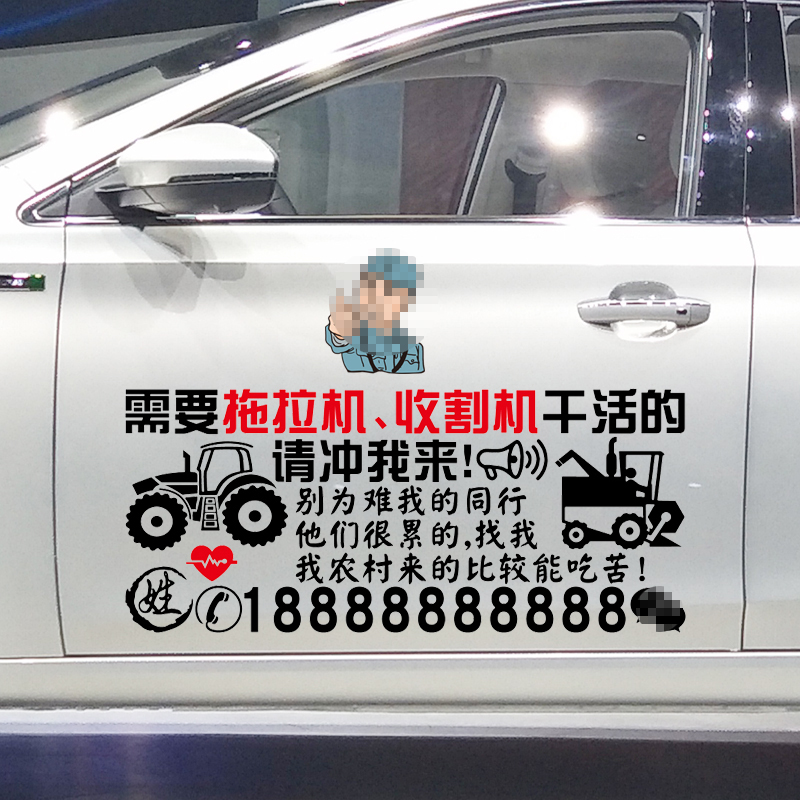 文字定制装 卓鹿 创意广告号码 个性 饰贴纸 拖拉机收割机车贴