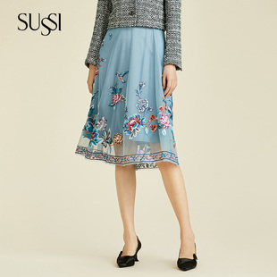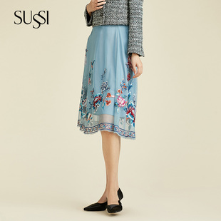 508985 气质格子拼接宽松散摆A字裙子女装 三福半身裙2025新款 秋季
