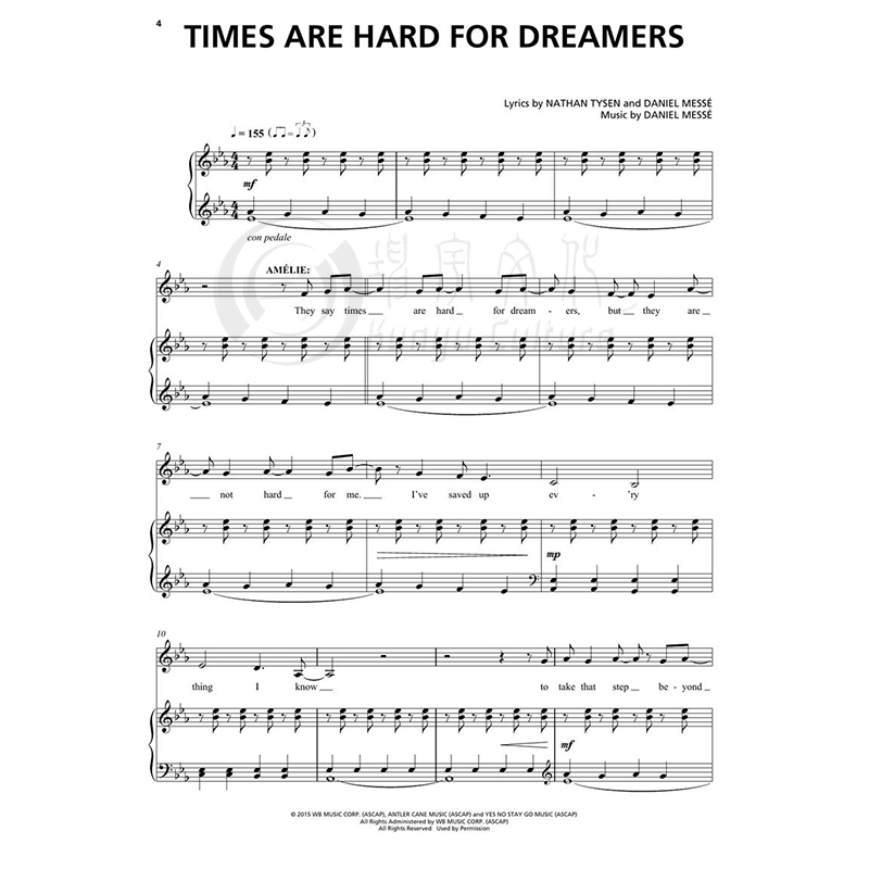 New HL00241528 海伦德原版 Selections Vocal Musical Amelie 乐谱书 天使爱美丽 新音乐剧