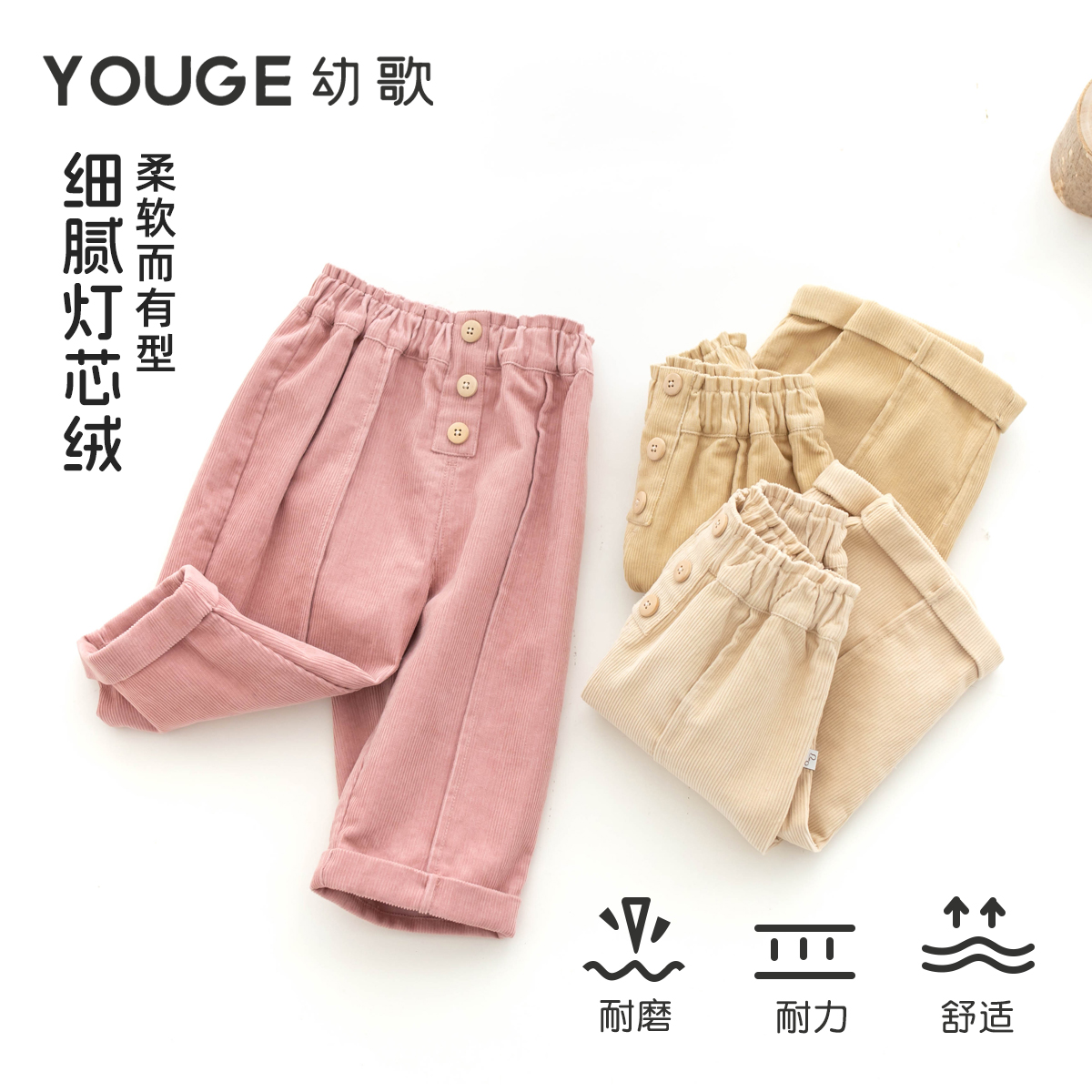 男女宝宝休闲卷边直筒裤 婴幼儿复古百搭灯芯绒长裤 秋季 YOUGE幼歌
