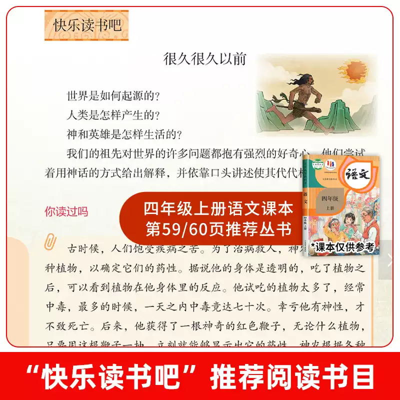神话与传说故事希腊4上必阅读书籍课外书人民教育出版 中国神话传说四年级上册快乐读书吧人教版 世界经典 原著正版 社 山海经小学生版
