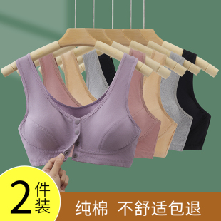 妇女专用胸罩薄款 纯棉妈妈内衣大码 前扣文胸无钢圈中老年人背心式