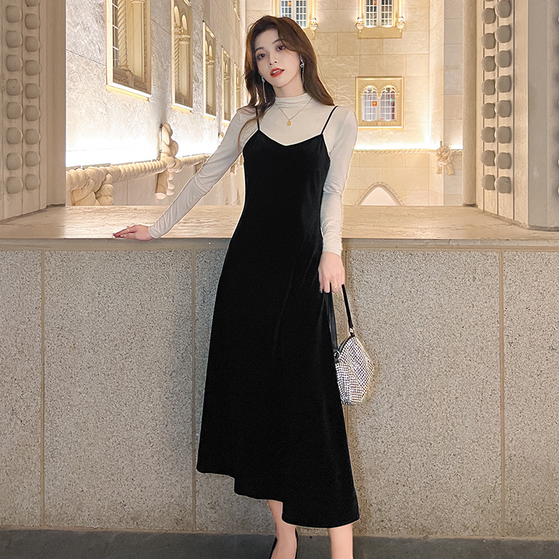 女装 秋水伊人雪纺吊带连衣裙秋冬新款 两件套海边度假今年流行套装