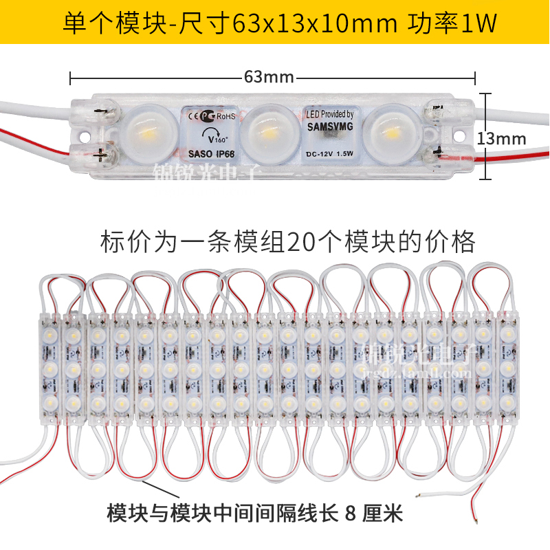 led模组12V防水高亮贴片灯珠2835广告灯箱门头招牌字光源灯条灯带