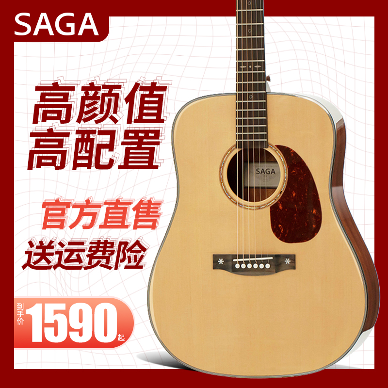 SAGAsf 电箱桃花芯云杉木原声单板专业吉他 830萨伽旗舰店官方正品