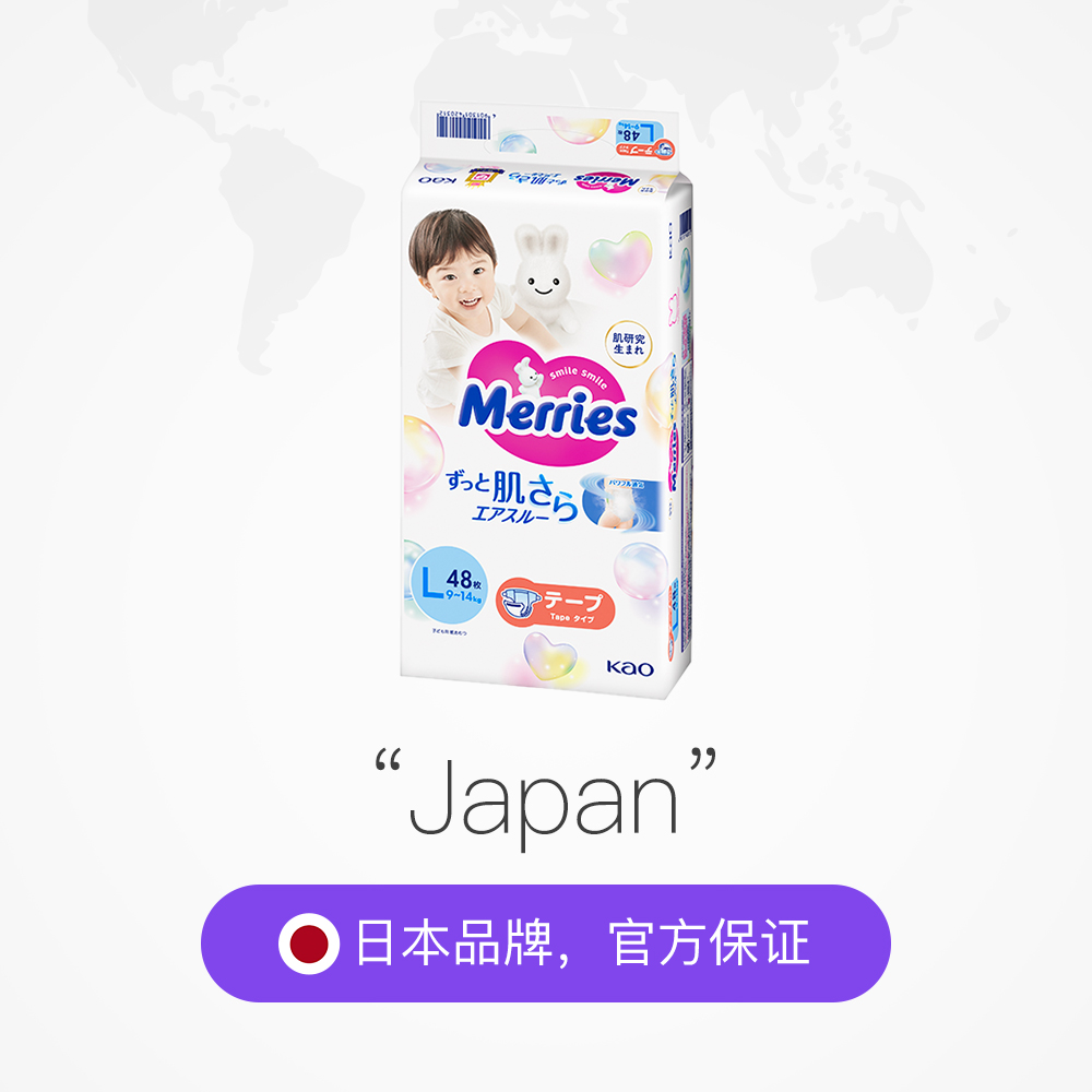 尿不湿L48 日本花王妙而舒Merries超薄透气婴儿宝宝纸尿裤 自营