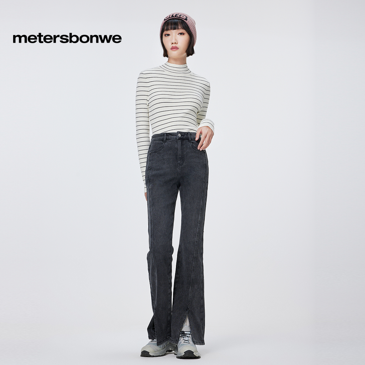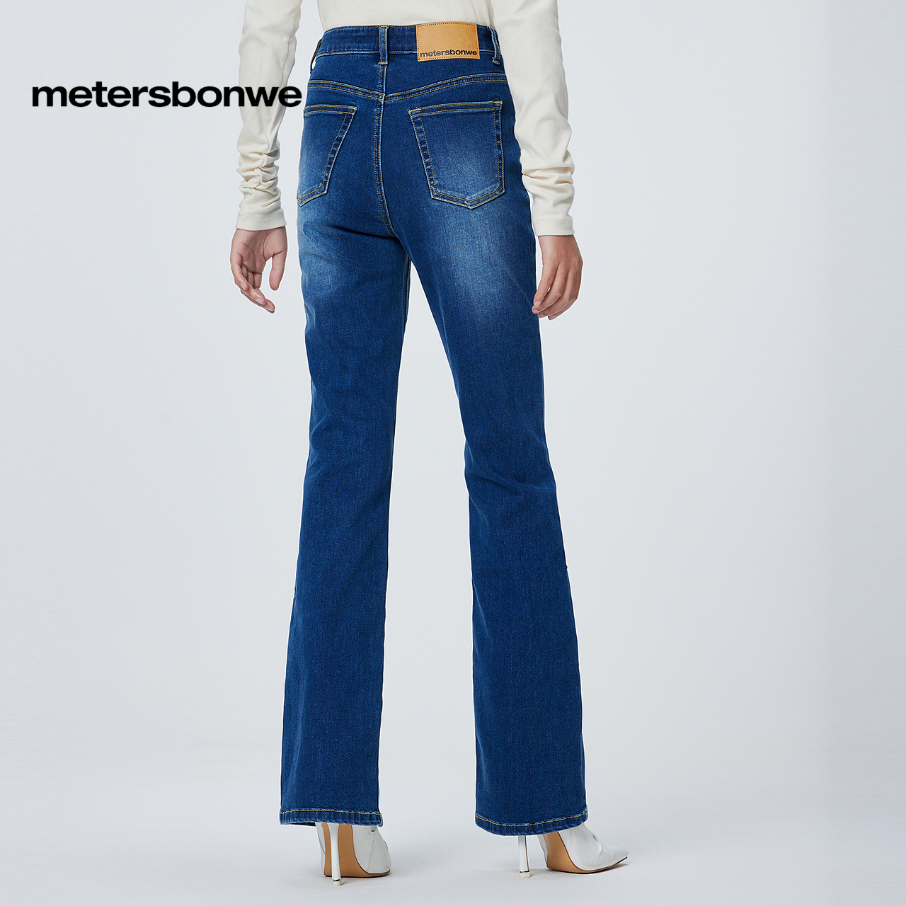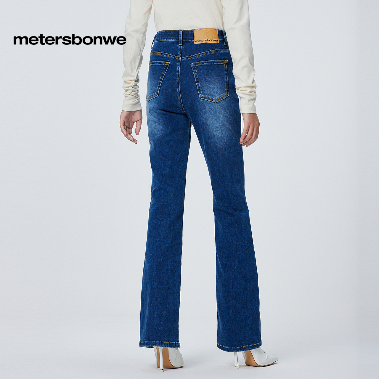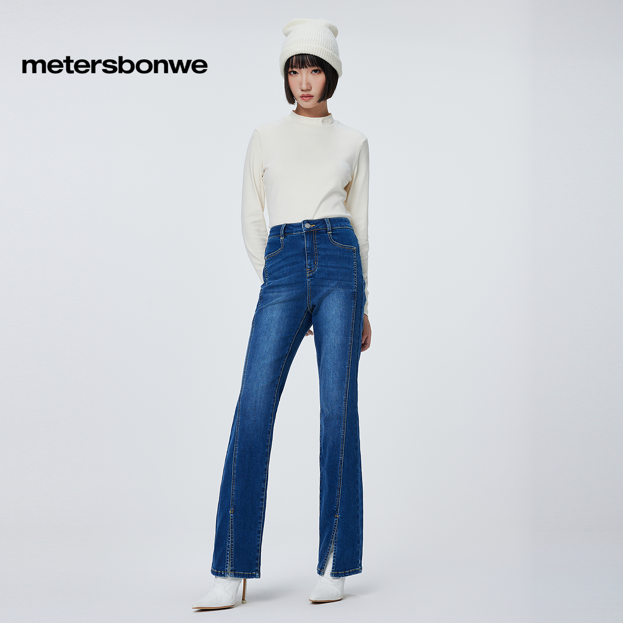 舒适开衩牛仔喇叭裤 潮流高腰显瘦修身 女士时尚 美特斯邦威牛仔裤