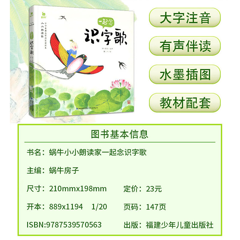 注音版 福建少年儿童出版 小小朗读家系列 幼儿园趣味阅读认字早教书大班识字阅读绘本 社 中华童趣水墨启蒙诵读本 一起念识字歌