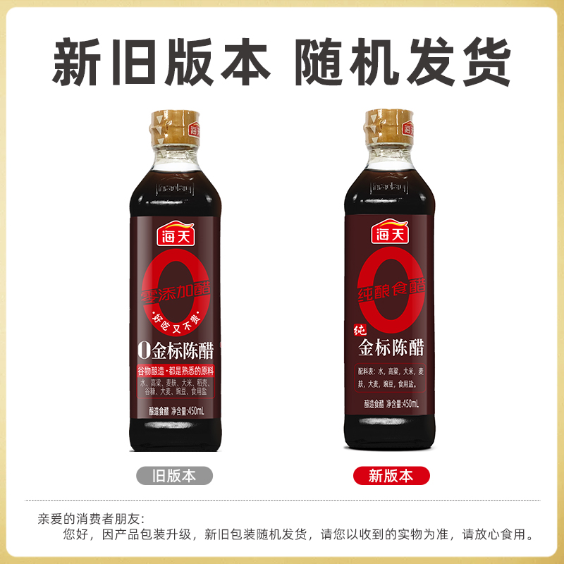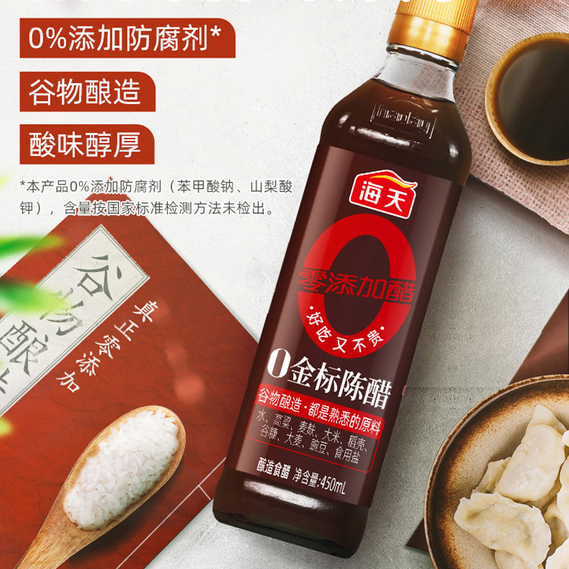 海天零添加醋0金标陈醋450ml酿造食醋香醋点蘸凉拌开胃醋
