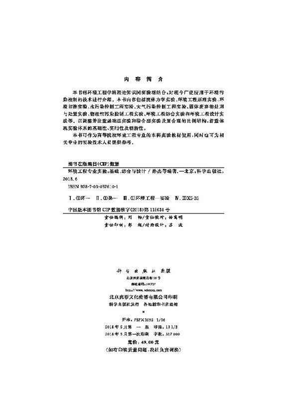综合和设计 科学出版 孙杰 叶恒朋 社9787030576101 陈绍华 环境工程专业实验——基础