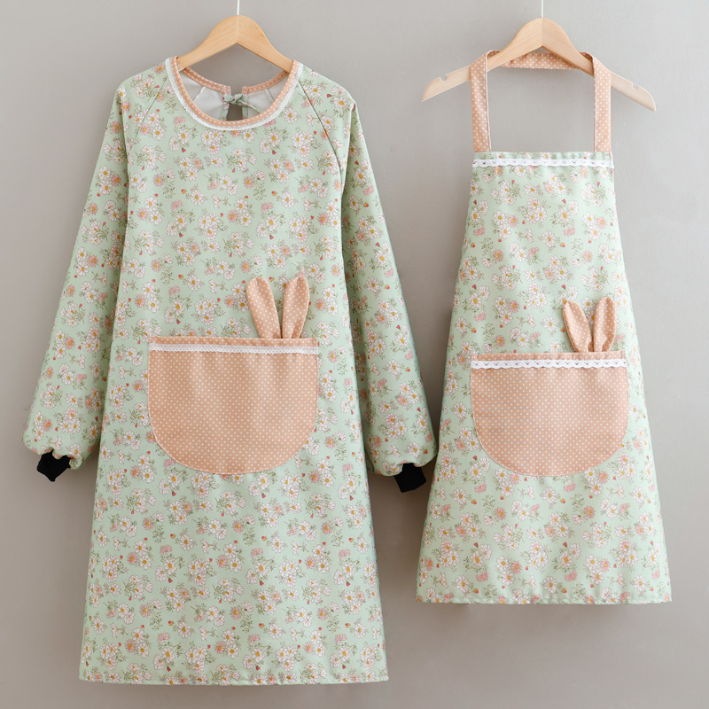 家用厨房防水防油围裙餐饮专用成人工作服长袖 罩衣女做饭围腰男士