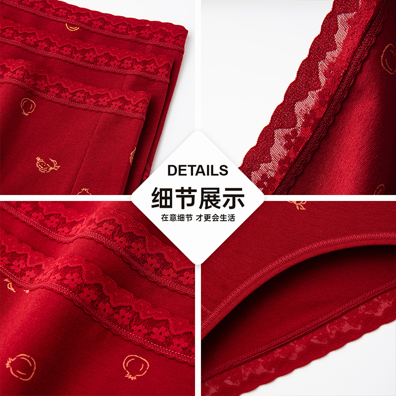顶瓜瓜中腰女士内裤 蛇年本命年大红色纯棉裆结婚蕾丝边高腰三角裤