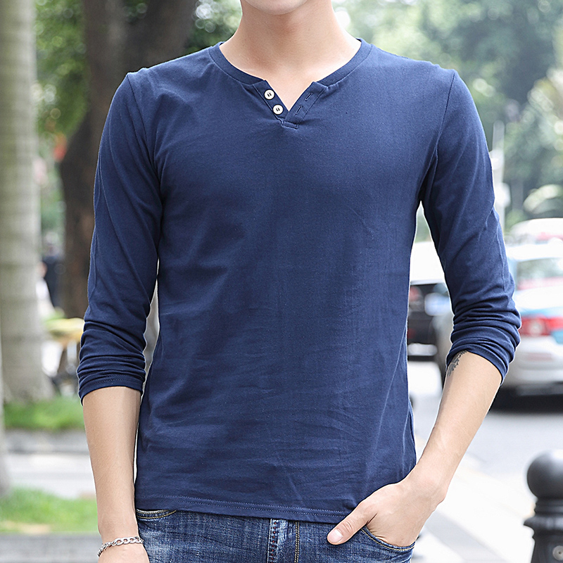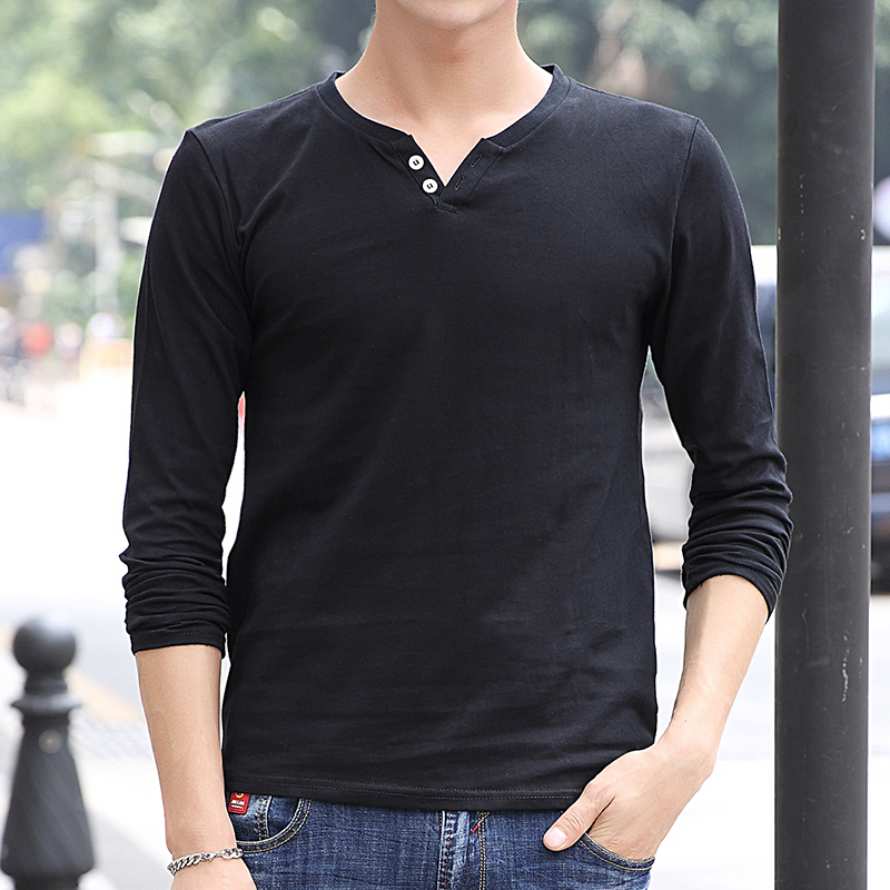 男装 2025秋季 内搭上衣服体恤白色大码 长袖 宽松V领纯棉港风恤男士