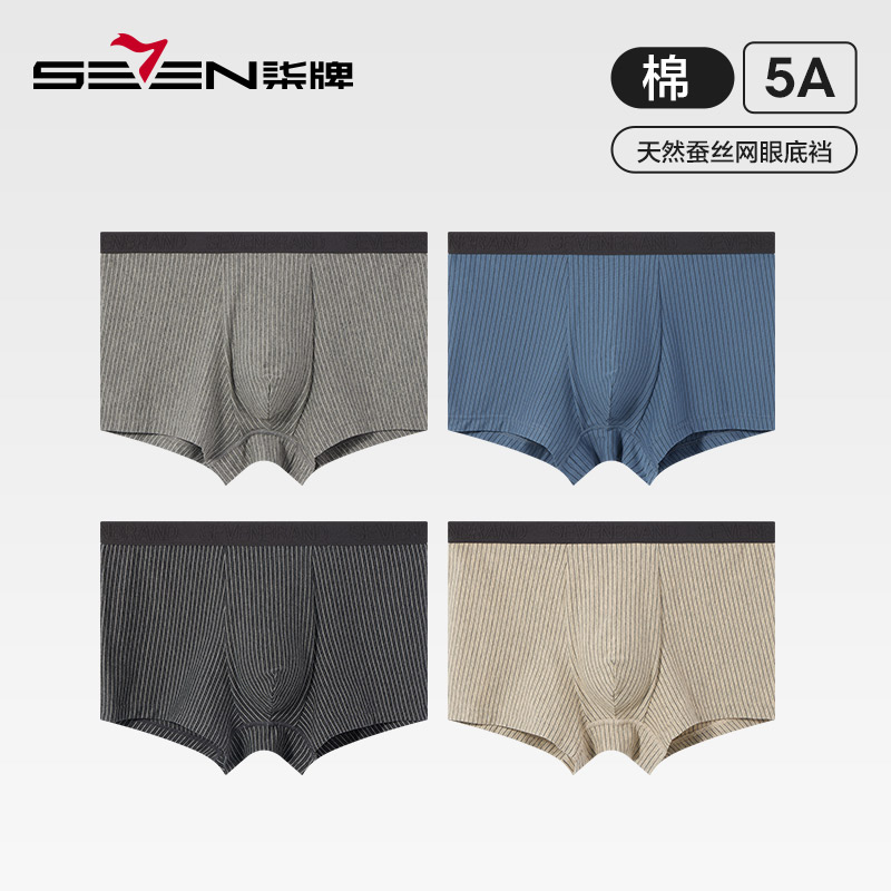 三角条纹四角彩棉短裤 平角新疆纯棉桑蚕丝抗菌男式 衩 内裤 柒牌男士