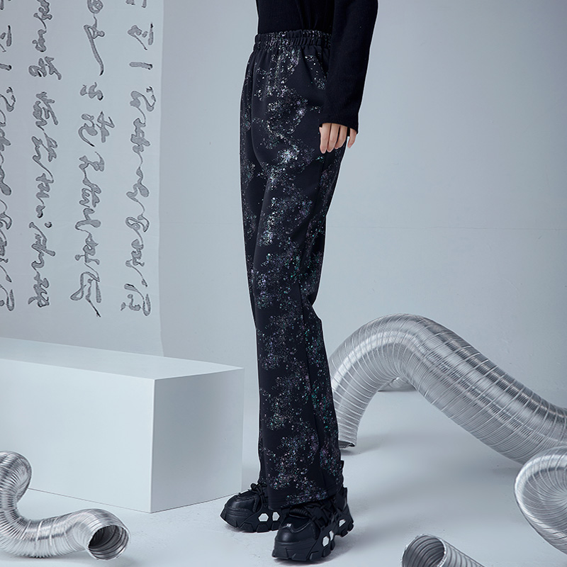 时尚 新款 设计感烫钻C225109 女2022冬季 金苑高腰宽松微喇休闲长裤