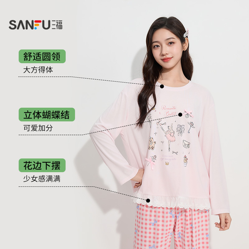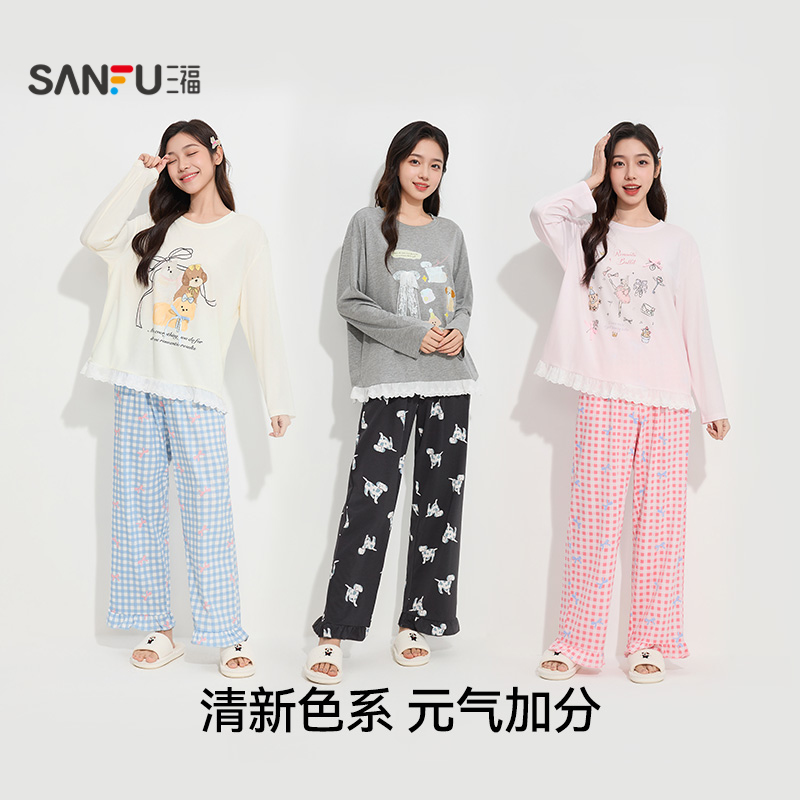 套装 柔软优可丝抗菌家居服趣味图案宽松长袖 2025秋季 三福睡衣女款
