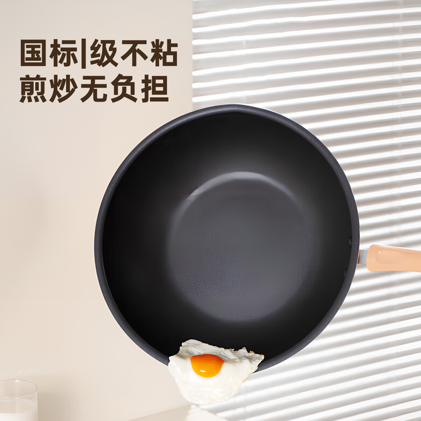 美 不粘锅炒锅家用锅炒菜锅平底锅麦饭石色电磁炉燃气灶专用炊具