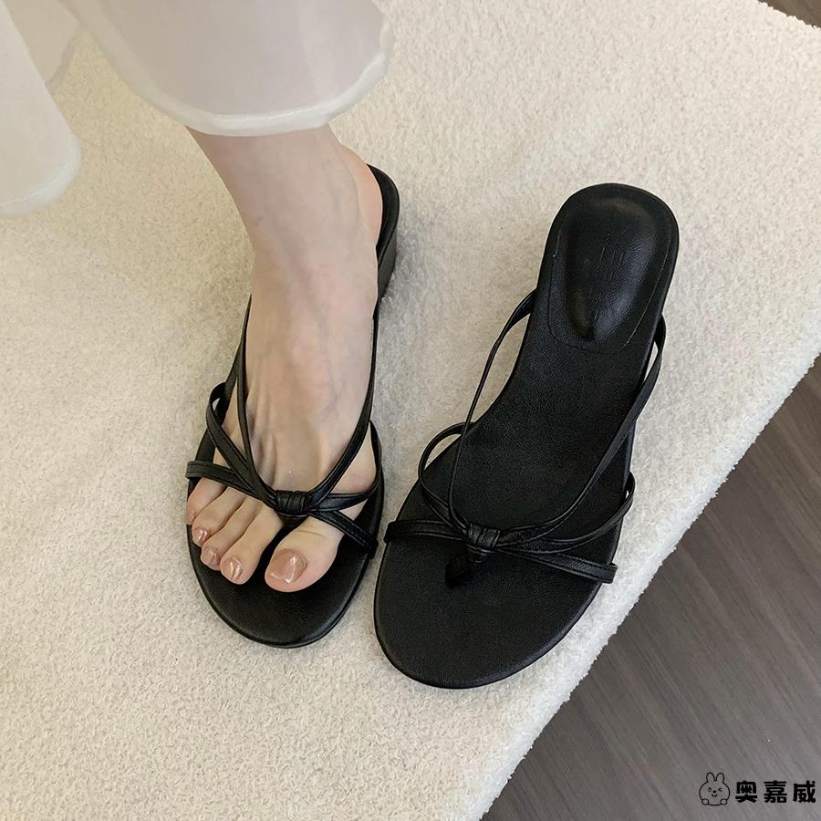 小凉拖高跟鞋 坡跟复古夹趾拖鞋 外穿海边沙滩法式 秋季 女2025年新款