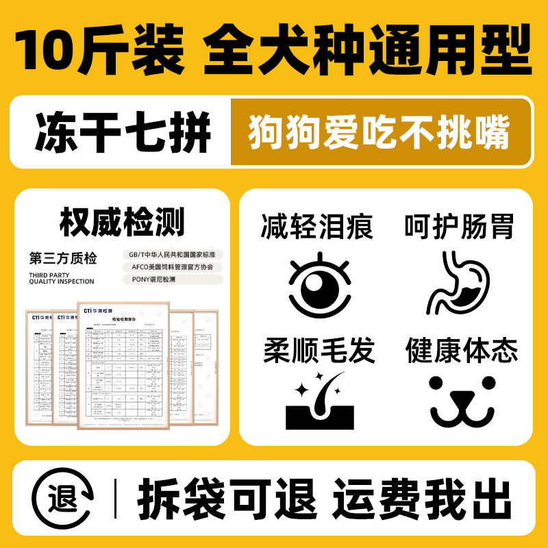 狗粮10斤装 幼犬小型犬专用成犬泰迪柯基比熊中全价通用型冻干犬粮