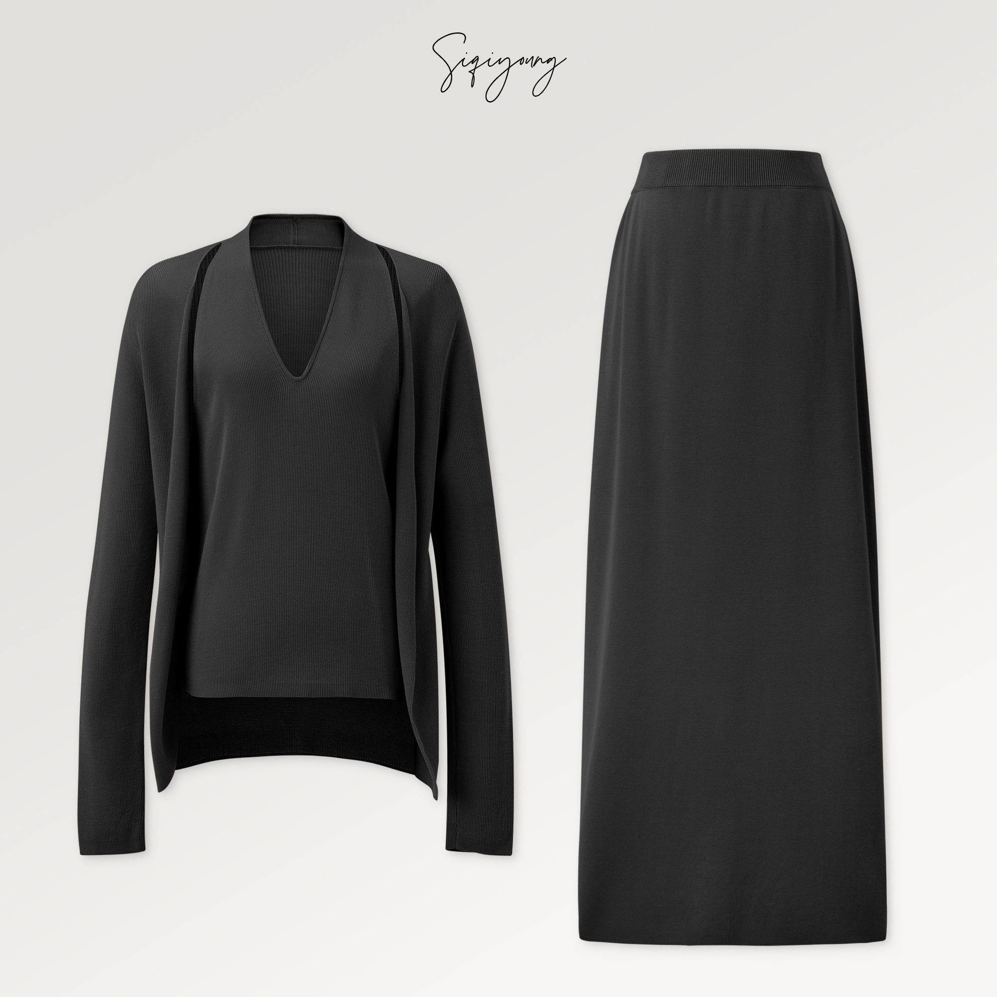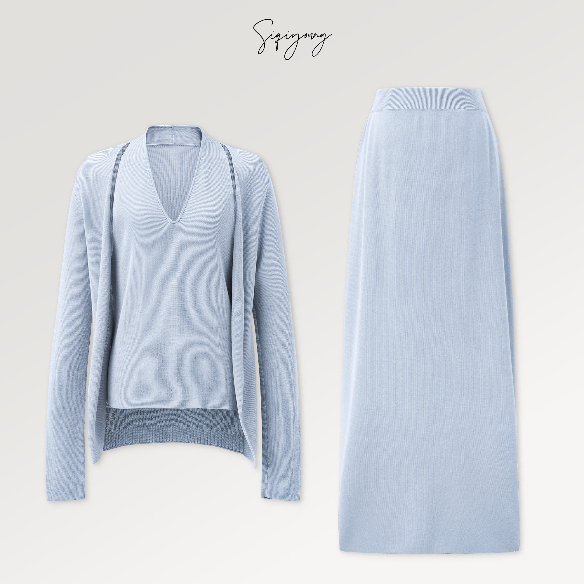 大弹力纯色休闲宽松 假两件随性优雅针织套装 SIQIYOUNG 漫步东京