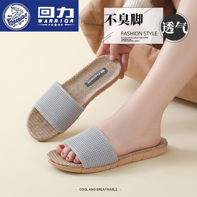女四季 回力亚麻拖鞋 男春秋耐磨防滑居家静音防臭室内软底透气拖鞋