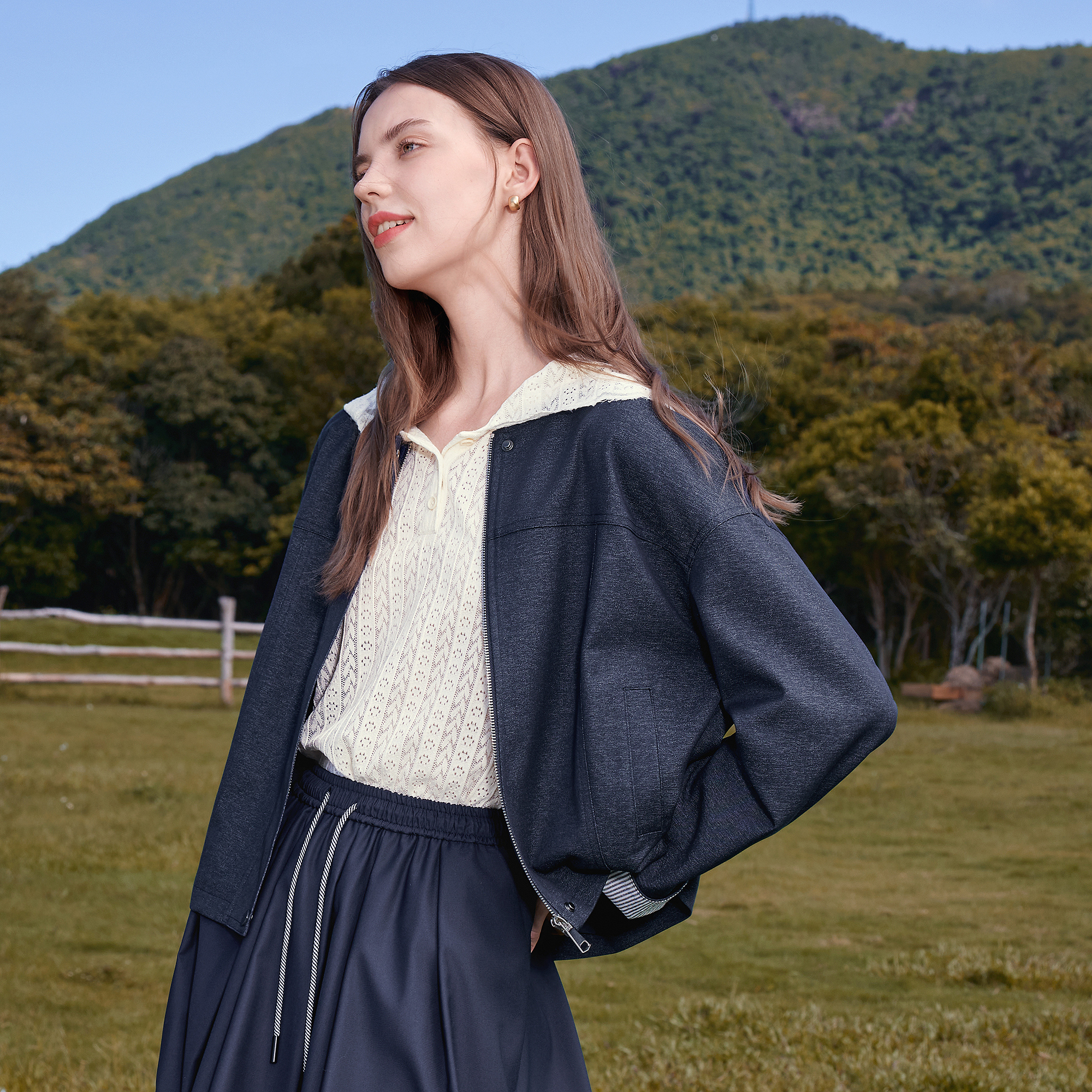 长袖 新款 体恤上衣 蕾丝鱼骨纹连帽T恤女2025年秋季 betu百图法式