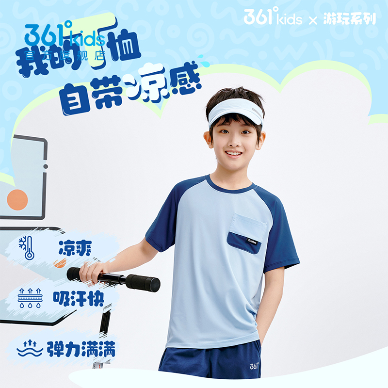 新款 迅干科技361童装 速干透气2025秋季 针织衫 中大童上衣 男童短袖