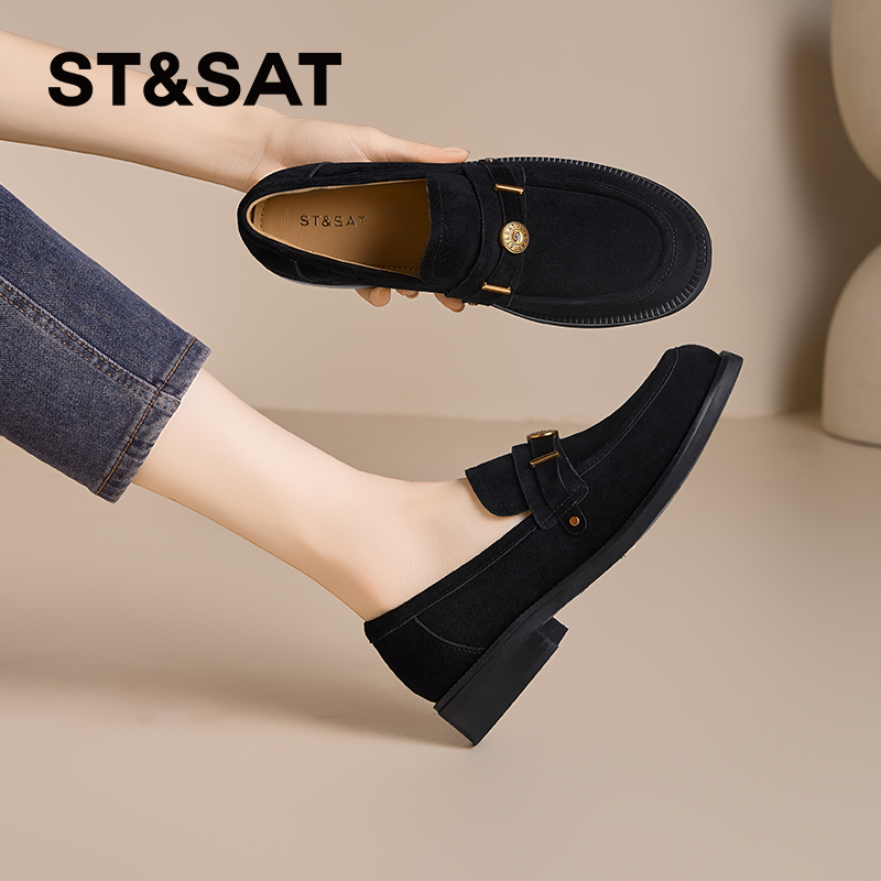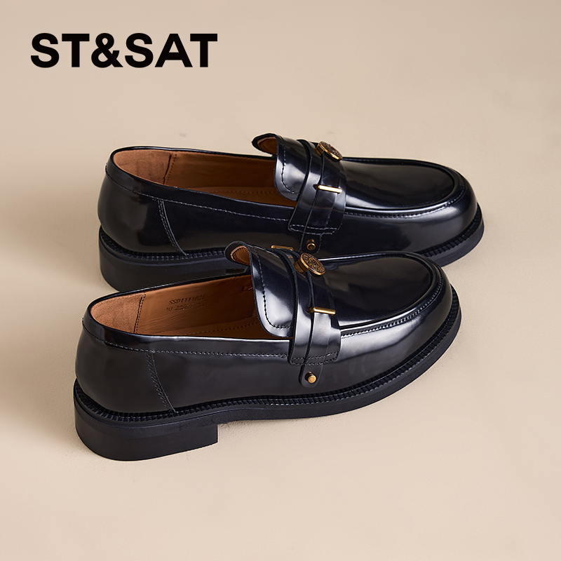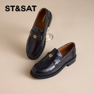 女秋冬一脚蹬小皮鞋 星期六真皮许愿金币英伦风乐福鞋 头层牛皮