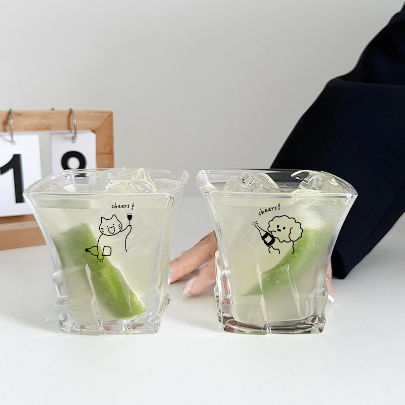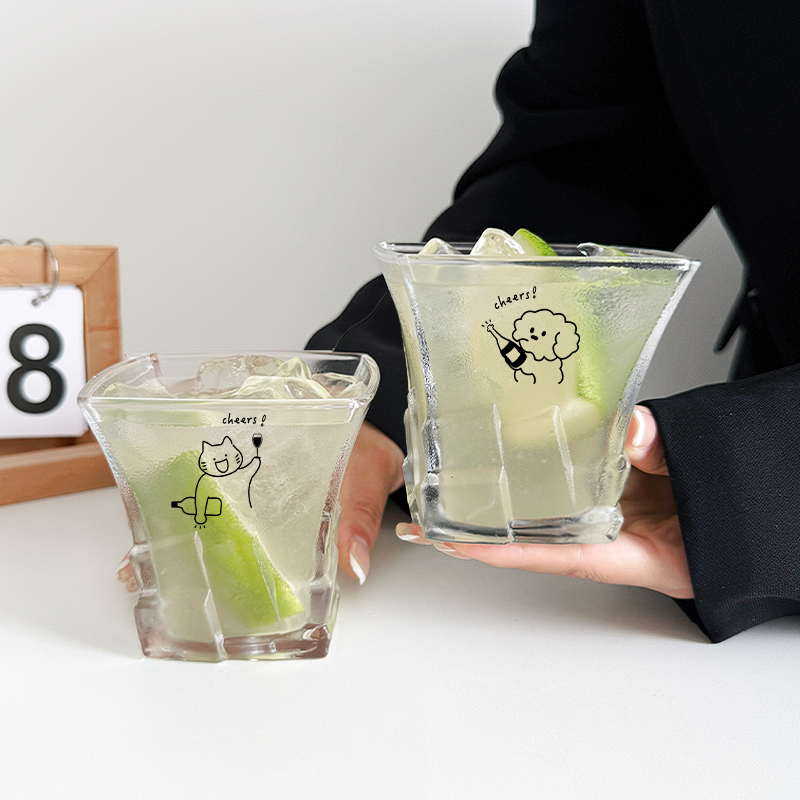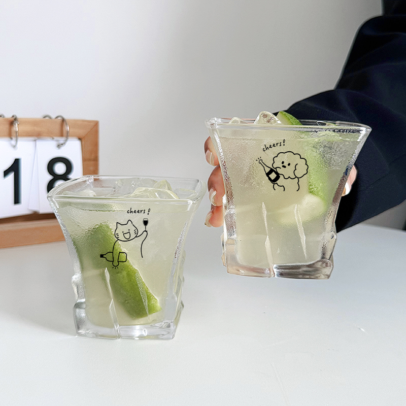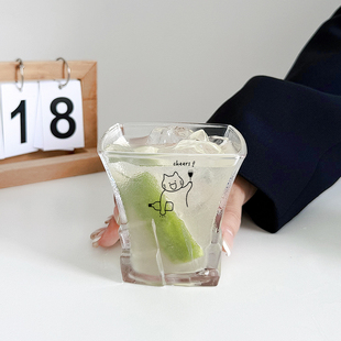 ins玻璃果汁杯冰美式 咖啡杯气泡水奶茶饮品杯创意加厚牛奶水杯