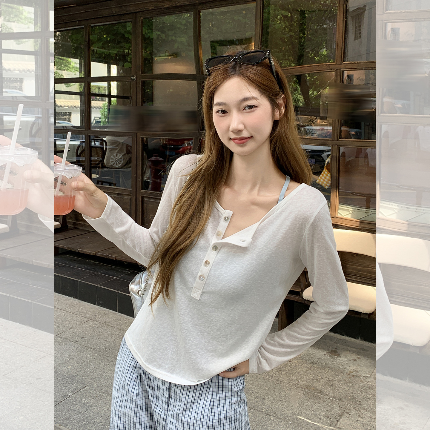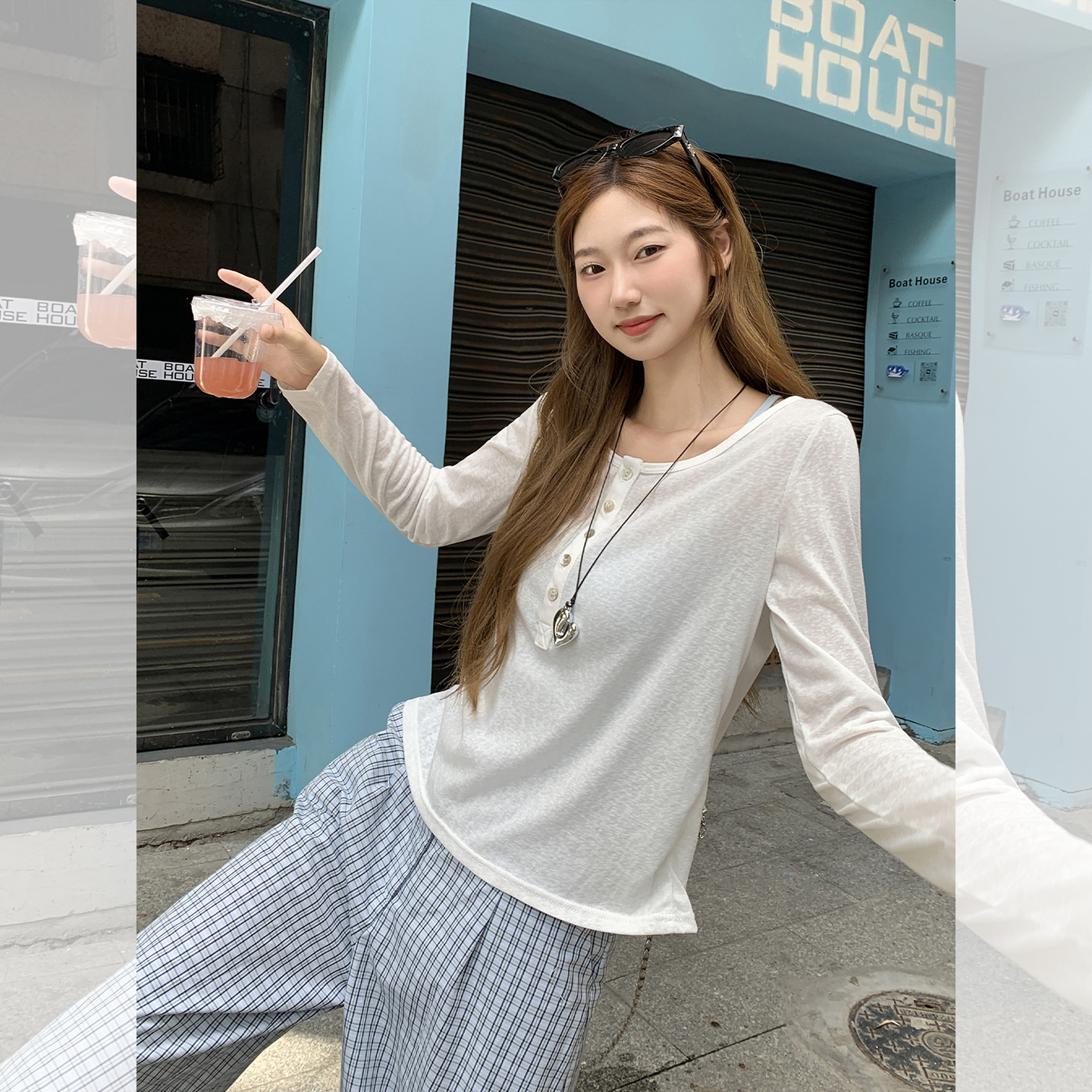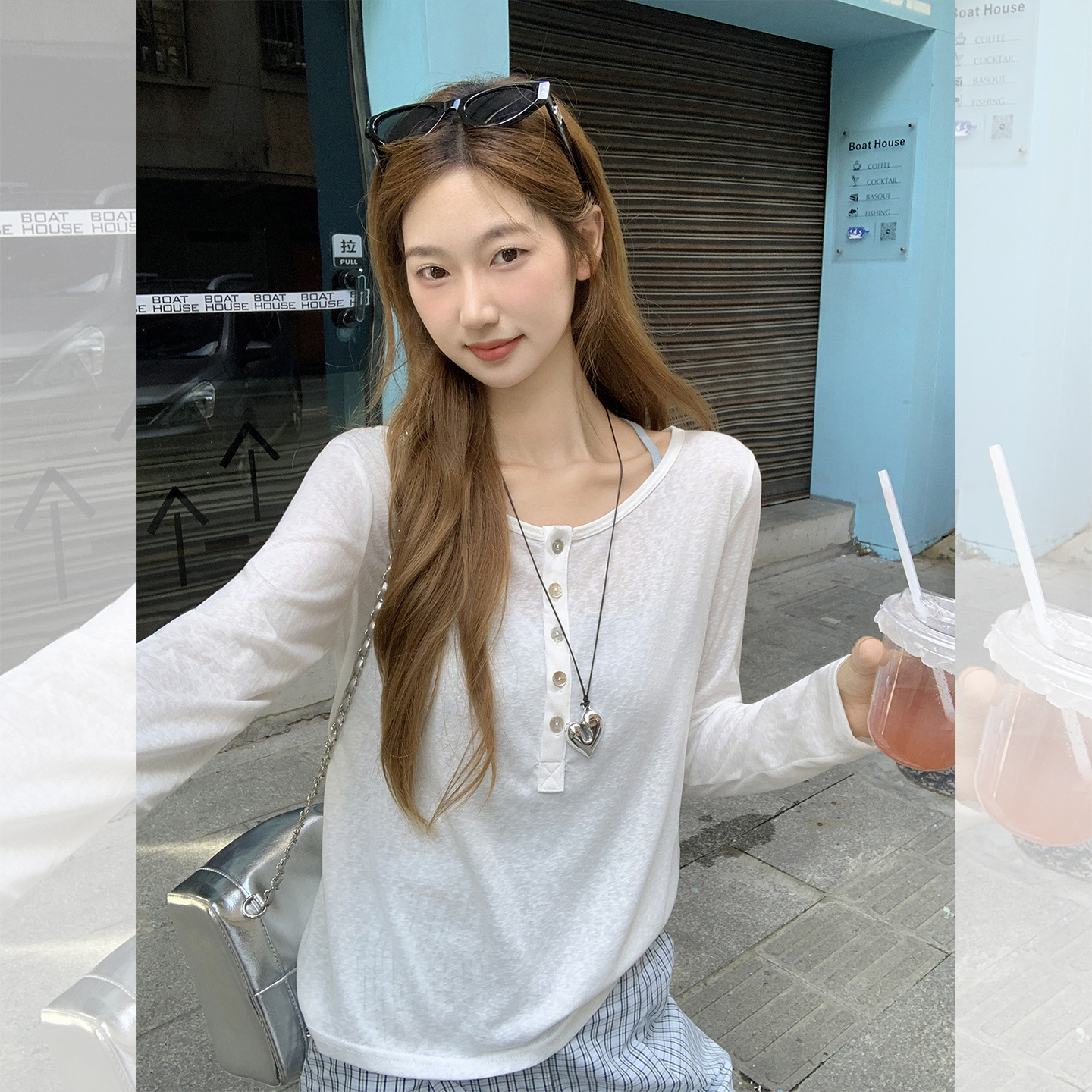 米澜时装 新款 白色防晒罩衫 女2025夏季 宽松 u领纽扣设计感长袖